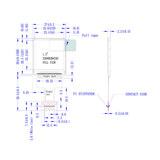 1.3インチ 正方形TFT LCDモジュール(240 x 240) [ST0130H5W-RSLW-F]
