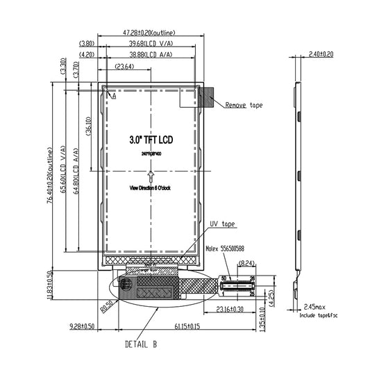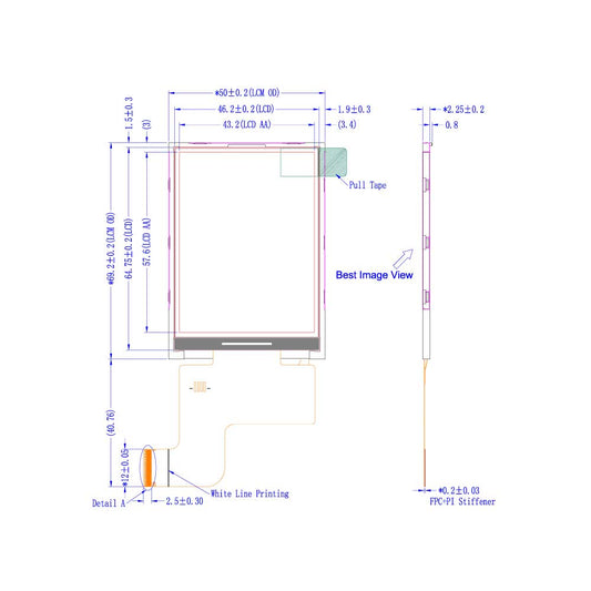 2.8" 高精細 TFT LCDモジュール (480 x 640) [ST0280B3W-RSLW-F]
