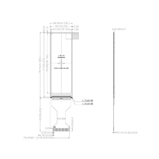 3.0" 広温度範囲 TFT LCDモジュール (360 x 640) [ST0295A1W-RSLW-F]