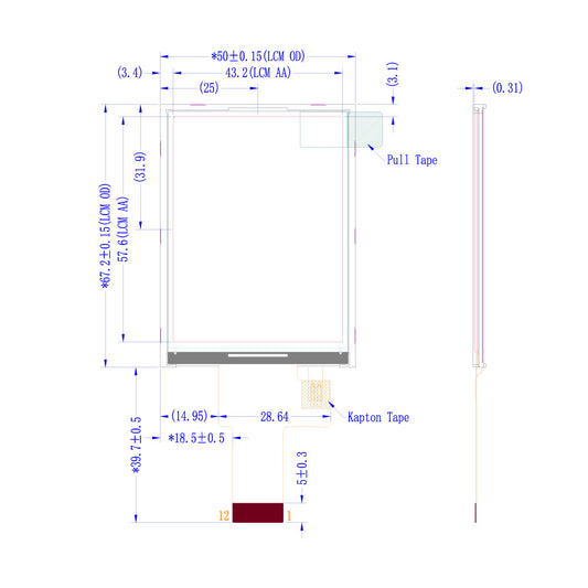 通常価格単価 / あたりセール価格 ¥20売り切れ3" 半透過型TFT LCDモジュール (240 x 400) [ST0300T2W-RSLW-C]