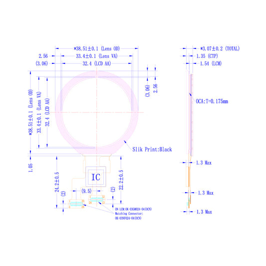1.3" 円型 TFT LCDモジュール (240 x 240) 静電容量タッチパネル付き [ST0130H3WCYOL-RSLW-C]