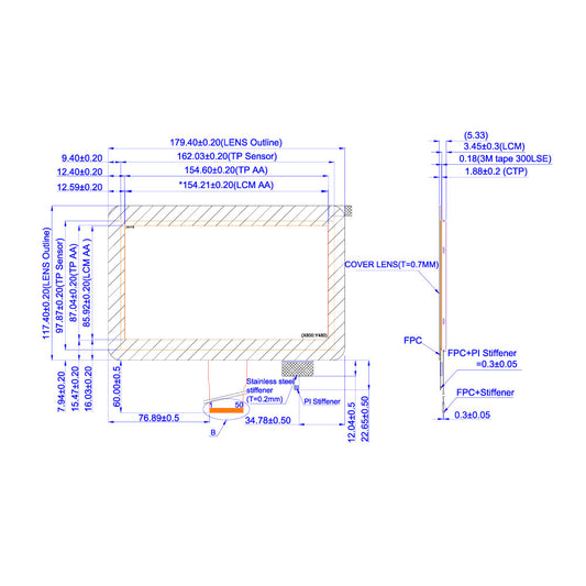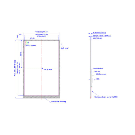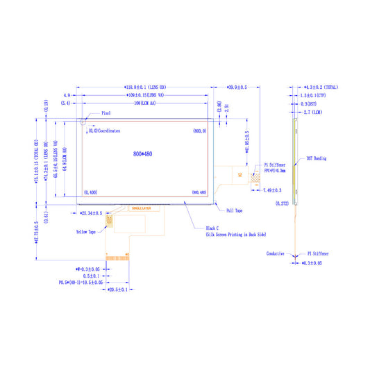 8" TFT LCDモジュール (800 x 1280 / WXGA) 静電容量タッチパネル付き [ST0800T1WCY-RSLW-C]