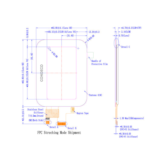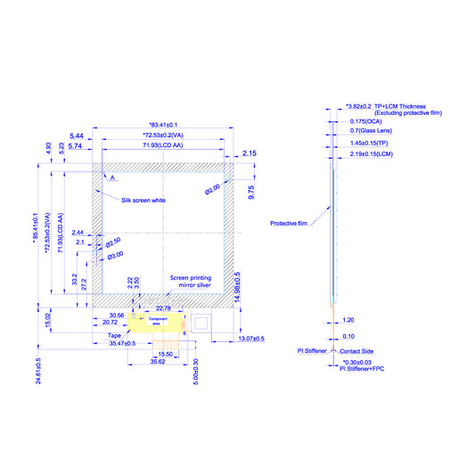 通常価格単価 / あたりセール価格 ¥204" 正方形 TFT LCDモジュール (720 x 720) 静電容量タッチパネル付き [ST0395B1WCYOL-RSLW-F]