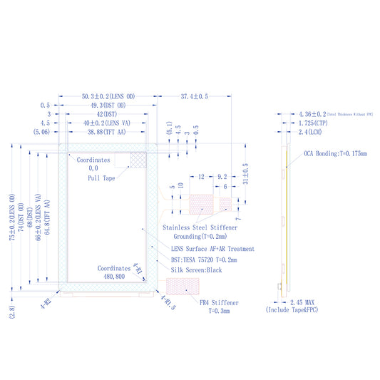 3" 半透過型TFT LCDモジュール (240 x 400)静電容量タッチ付き [ST0300T2WCYOL-RSLW-C]