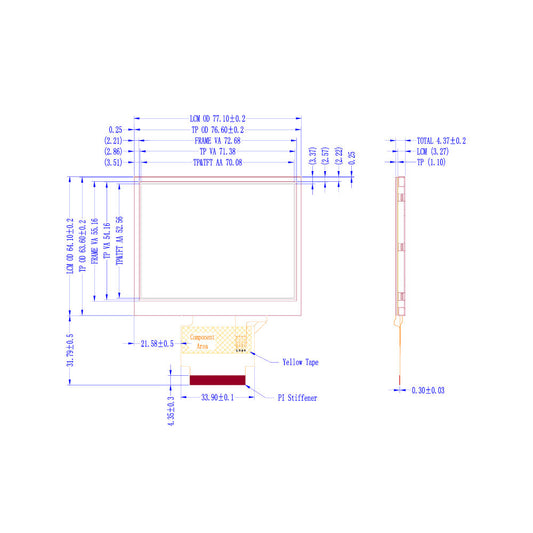 通常価格単価 / あたりセール価格 ¥202.8" TFT LCDモジュール (240 x 320) 静電容量タッチパネル付き [ST0280H4WCYOL-RSLW-F]