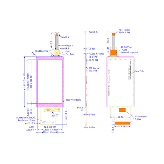 3" TFT LCDモジュール (360 x 640) 静電容量タッチパネル付き [ST0295A1WCYOL-RSLW-F]