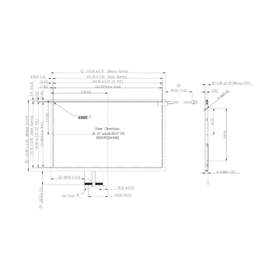 10.2" Ultra High Brightness TFT LCD Module (800 x 480) [ST1020I3W-RSCLW-F2] Sunlight Readable