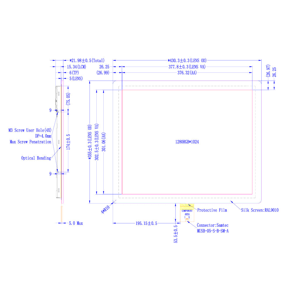 ![19" Ultra High Brightness TFT LCD Module (1280 x 1024) with Capacitive Touch [ST1900A4WCYOL-RSHLWRSHLW-C]](http://santekdisplay.com/cdn/shop/files/Spec_ST1900A4WCYOL-RSHLW-C_A01.jpg?v=1713145133&width=1445)