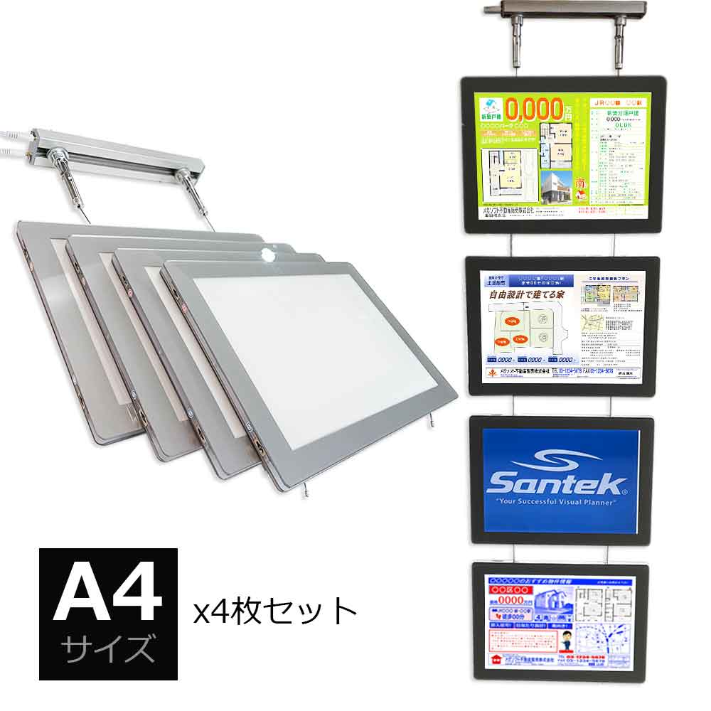 [軽量アクリル製] A4 LEDライトパネル 連結 メディア入替簡単(両面) 不動産パネル