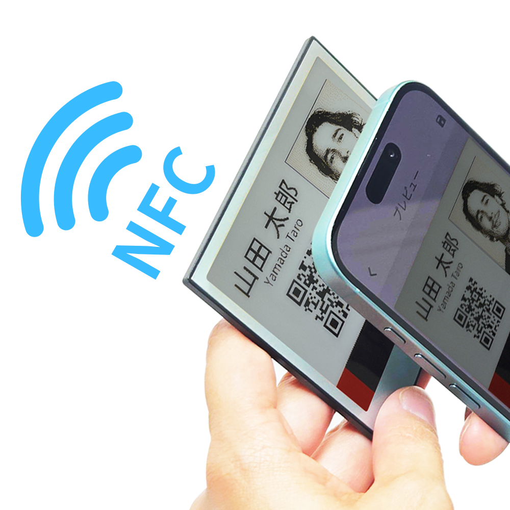 A. EZ Signは「電子ペーパー+NFC通信/給電」の仕組みです。 書き換えの瞬間だけスマートフォンやNFCリーダーから給電され、表示更新後は電力を使わずに表示を保持します。 そのため、電池交換・充電・配線工事は不要です。