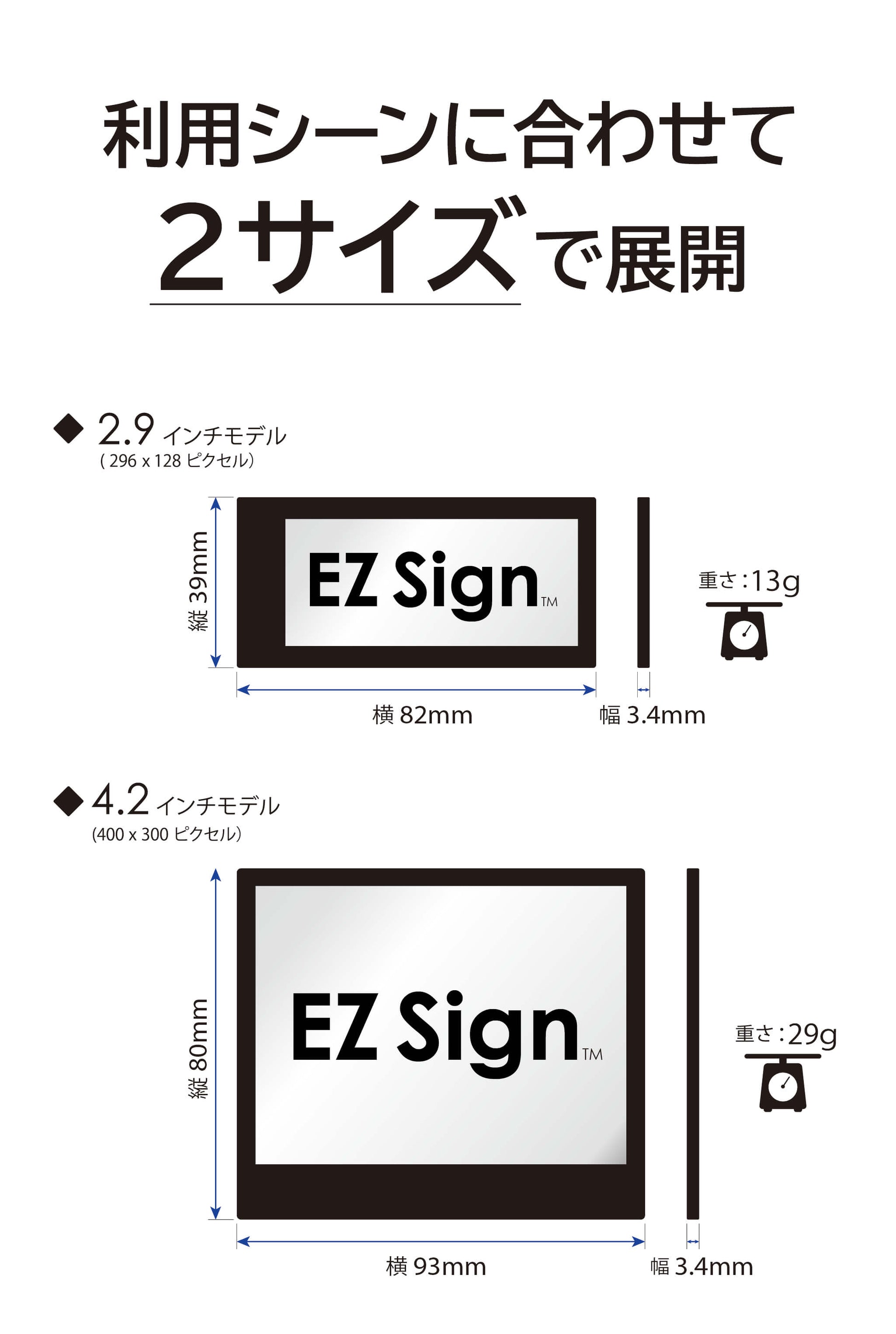 サイズ別のおすすめ用途(2.9インチ/4.2インチ)